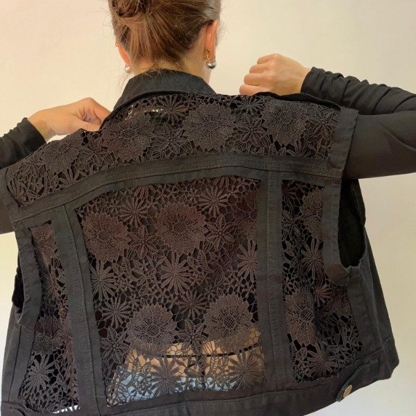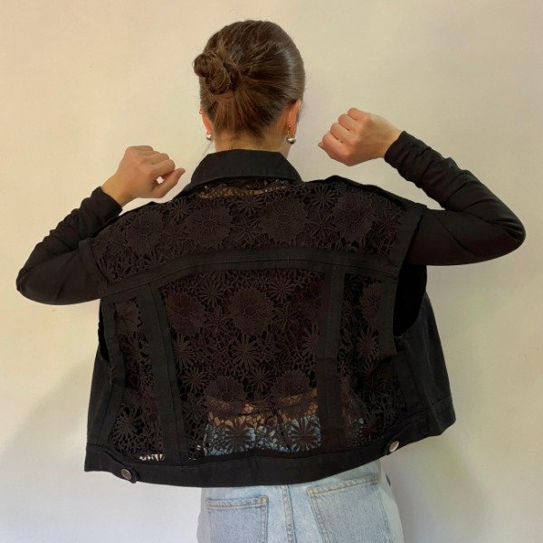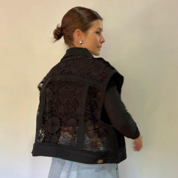 Dale un toque único a tu outfit con este chaleco de jean negro oversize, una prenda versátil y moderna que eleva cualquier look. Su diseño relajado y el detalle de guipiure en la espalda aportan un aire de elegancia y personalidad, ideal para quienes aman destacar con estilo. Perfecto para festivales, sunsets o el día a día, combina fácilmente con tus prendas favoritas para crear outfits auténticos y con actitud.